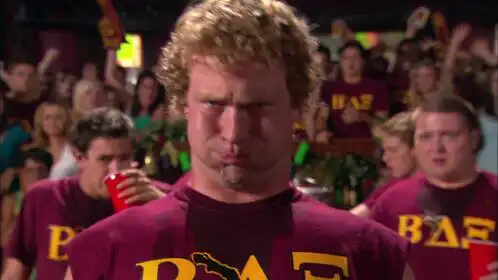 Община братства в картине функционирует как микрокосм общества, где свои символы и законы формируют коллективную идентичность. Здание Бета-Хауса, эмблемы и ритуалы выступают не просто фоном, а визуальным маркером принадлежности: греческие буквы, нашивки и плакаты символизируют набор правил, через которые проходят новички, чтобы получить статус «своих». Сцены инициации и челленджи между домами работают как современная форма ритуала перехода, где испытания одновременно пугают и сближают, помогают героям преодолеть страхи и утвердить свой образ. Такие ритуалы в фильме выполняют двойную функцию: они как бы подтверждают зрелость, но в то же время выставляют ее на посмешище, демонстрируя, насколько построеная маскулинность зависит от внешних атрибутов и публичного признания.